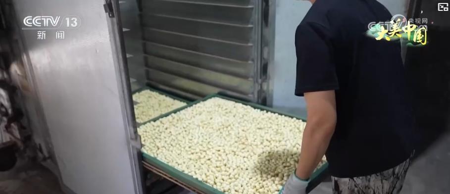 除了赏荷,眼下,也是新鲜莲子上市的时节。每天清晨,种植户们身背竹篓、穿梭荷塘,将一朵朵莲蓬采下,制作成干莲。